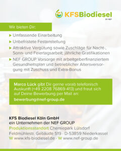 Starten Sie Ihre Karriere bei der KFS Biodiesel.